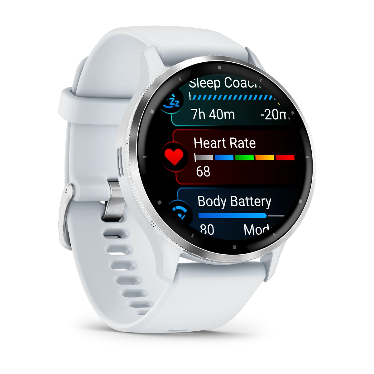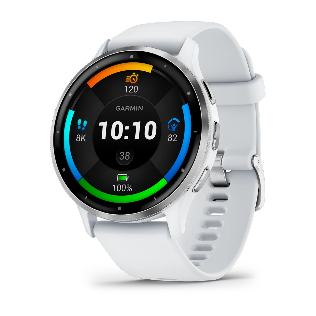 Garmin Venu® 3 Silver stainless steel bezel with whitestone case and silicone band