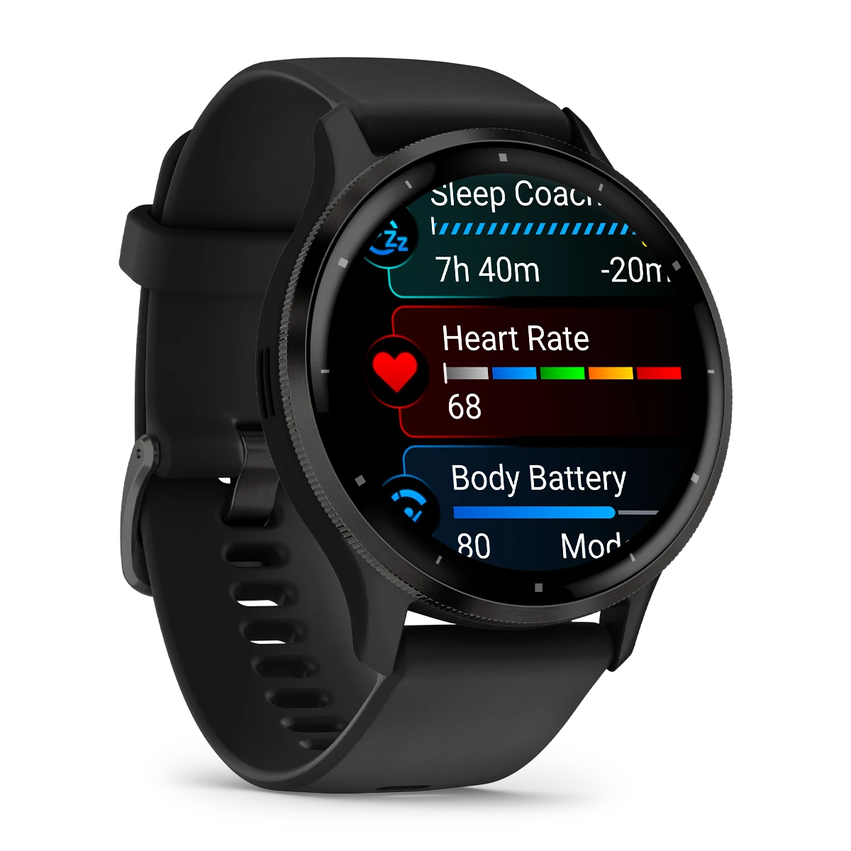 Garmin Venu® 3 Slate stainless steel bezel with black case and silicone band