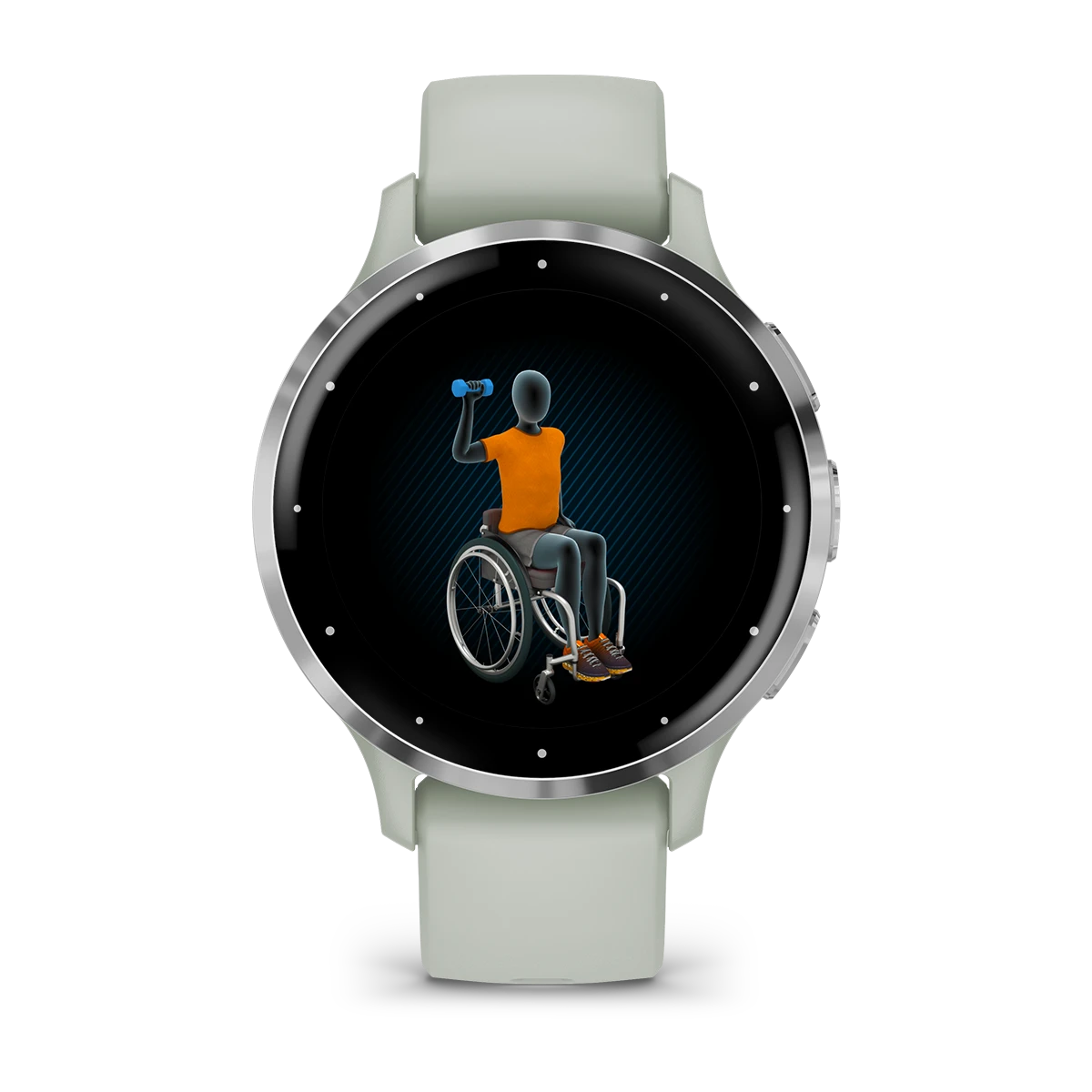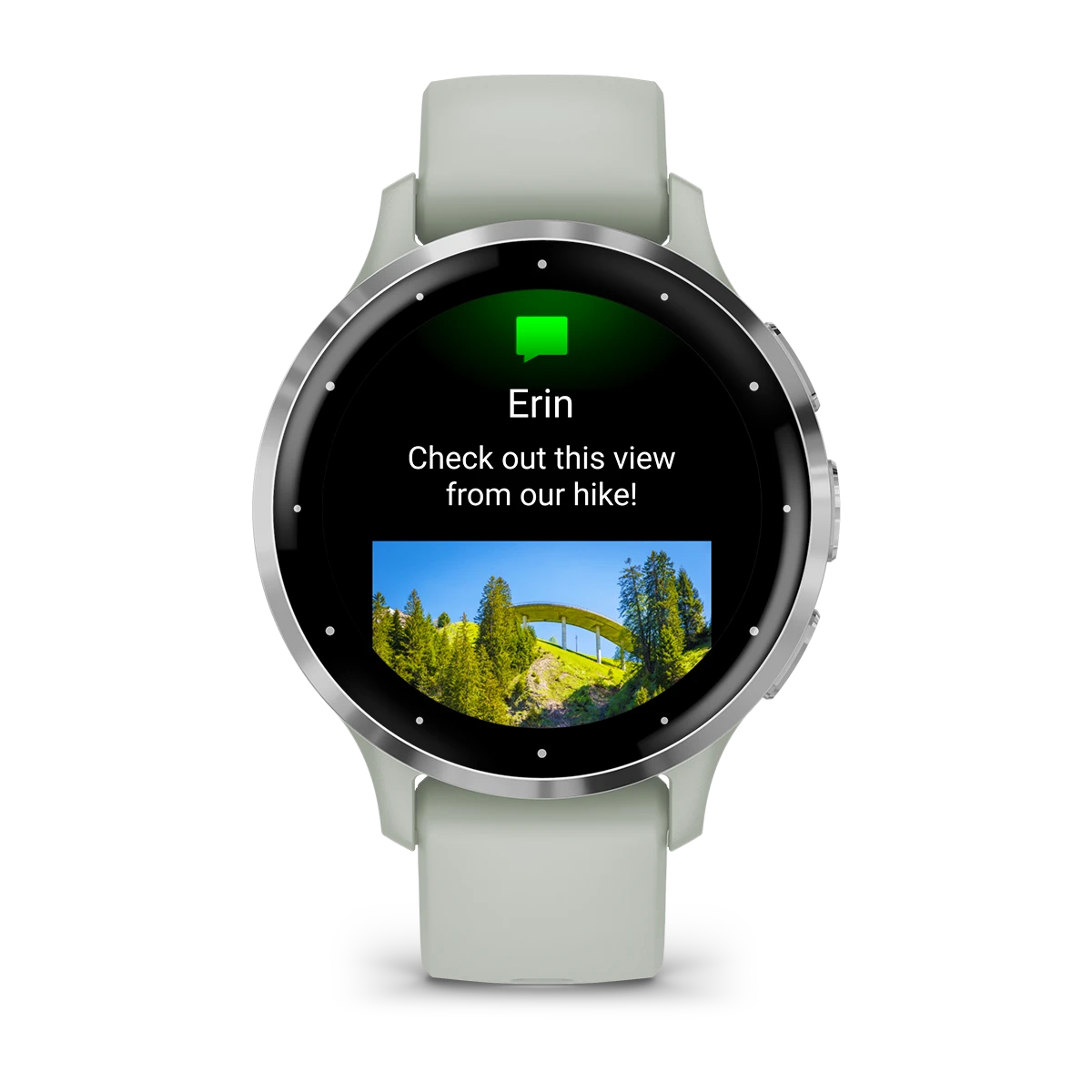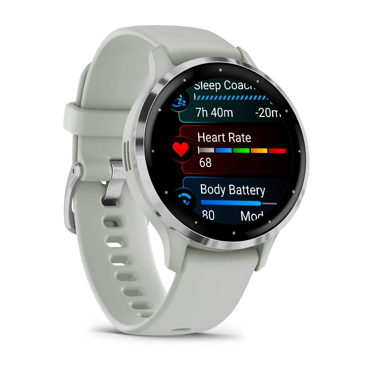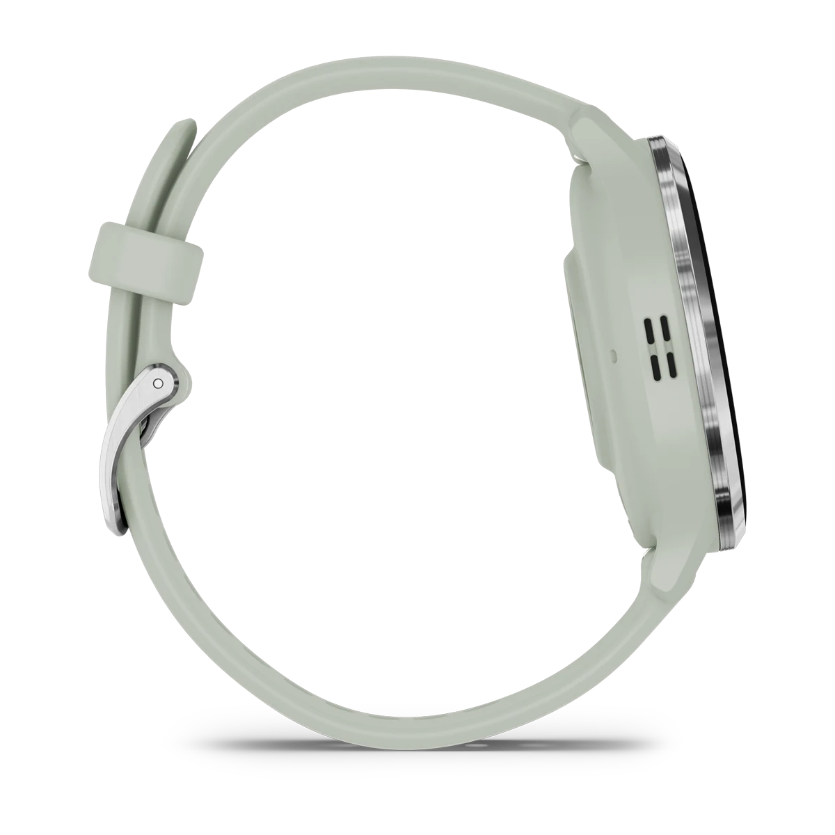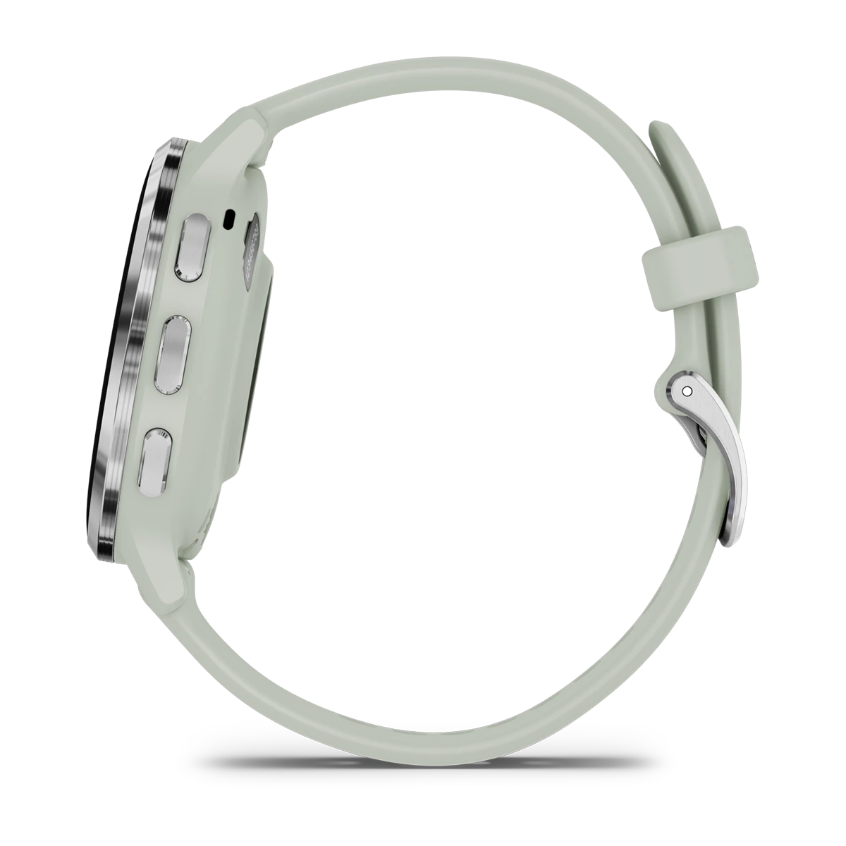 Garmin Venu® 3S Silver stainless steel bezel with sage grey case and silicone band