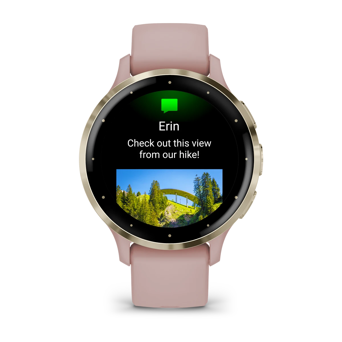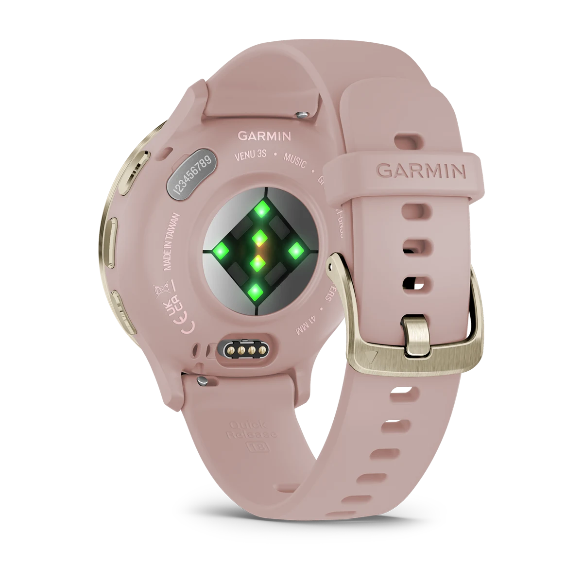 Garmin Venu® 3S Soft Gold Stainless Steel Bezel with Dust Rose Case and Silicone Band