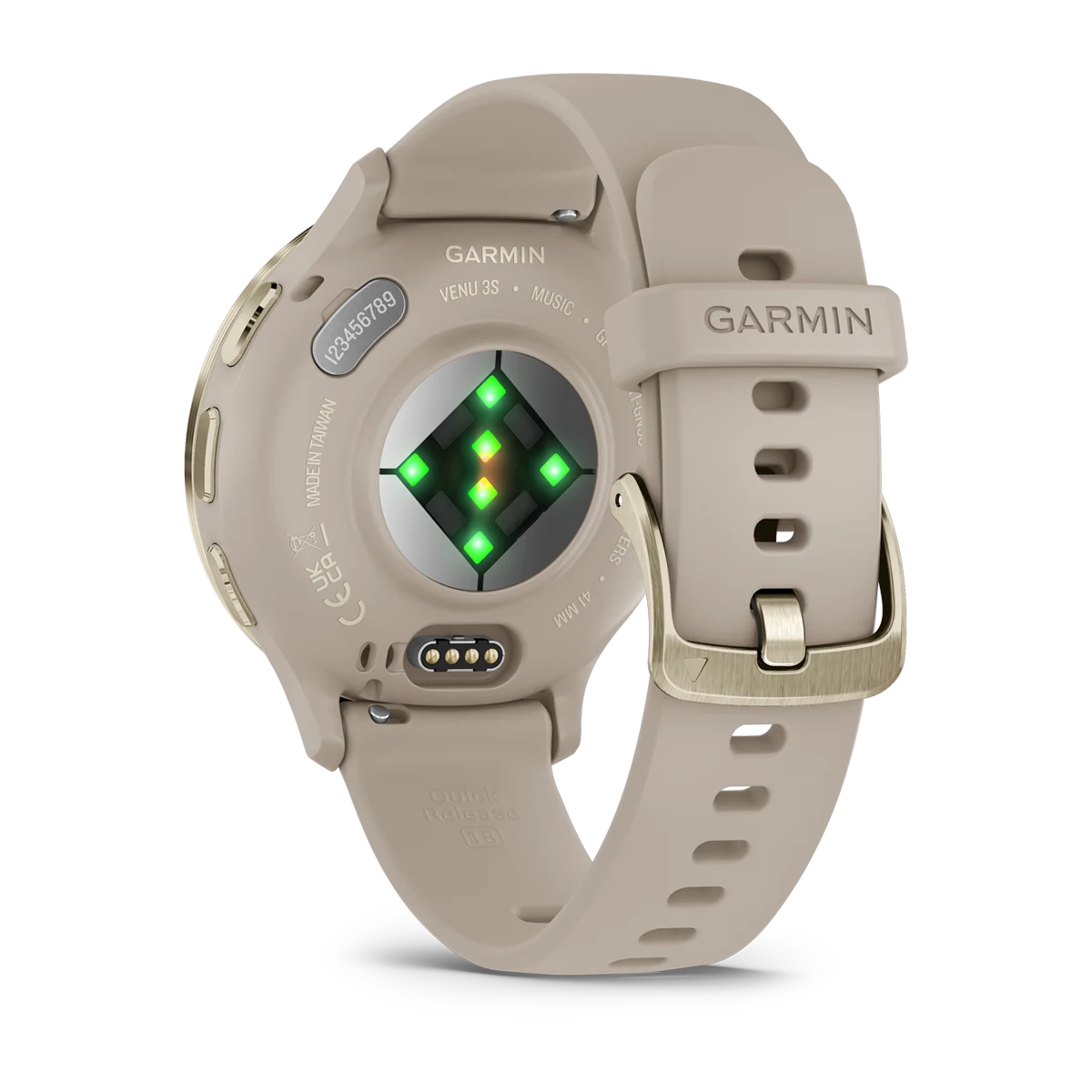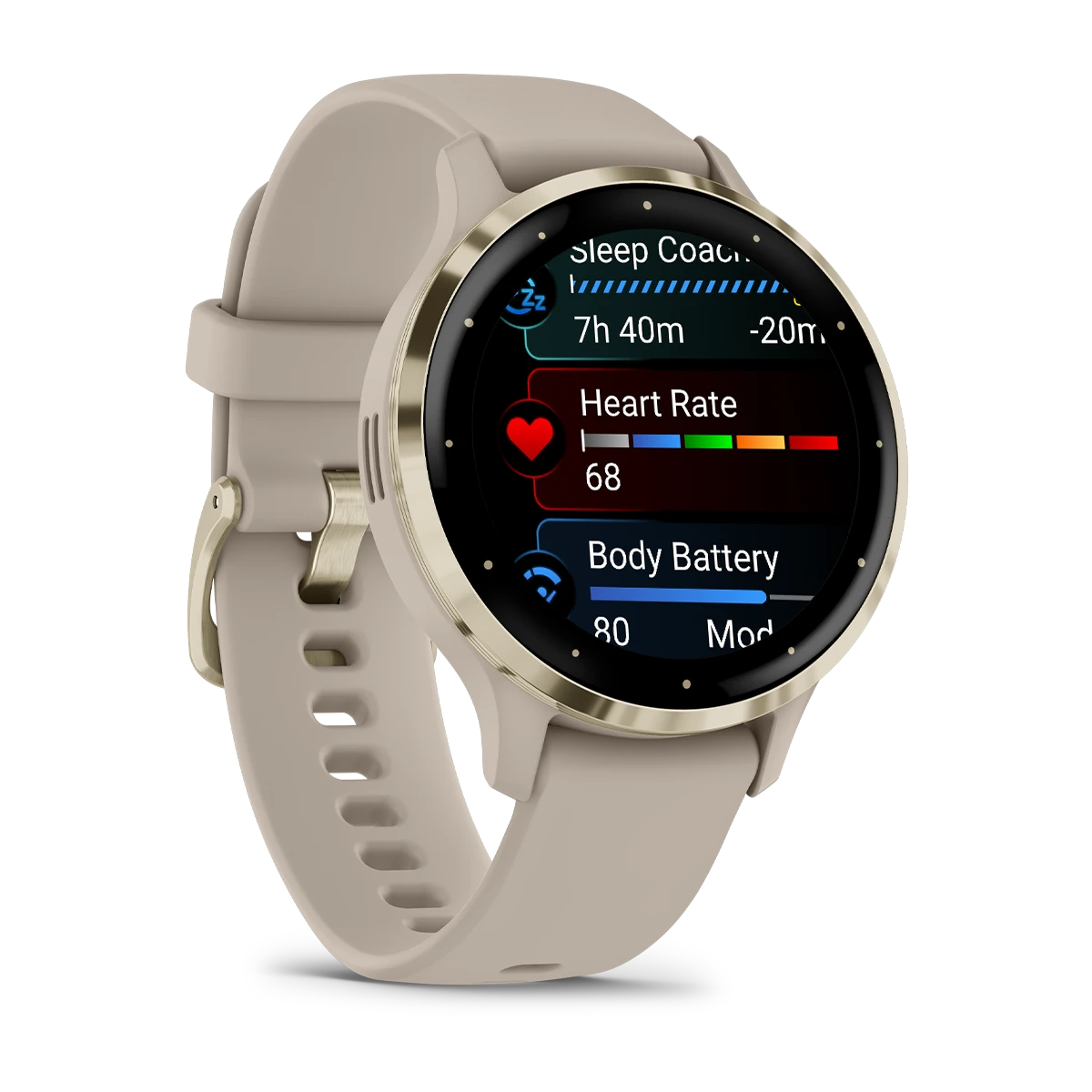 Garmin Venu® 3S Soft Gold Stainless Steel Bezel with French Gray Case and Silicone Band